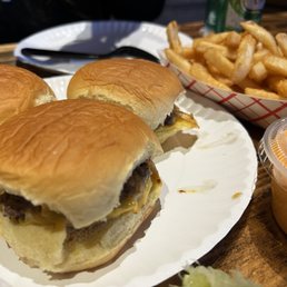 The food here is very tasty. Their sliders are well seasoned and served on soft buns with some caramelized onions for added flavor. The quesadillas are generously packed with chicken and cheese and their wings are finished with a nice crisp and drizzled with Buffalo sauce. The service was pretty quick. I called in for pickup and within 10 minutes my food was ready. They do have seating for dining in although seems a little dark in there.